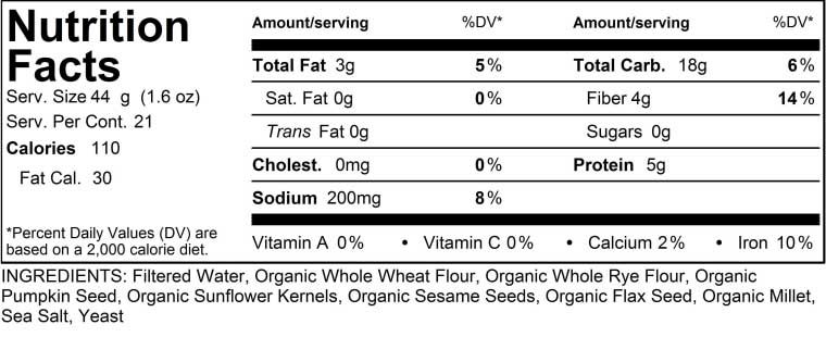 Harvest Festival – A classic flavor with pumpkin, sunflower, flax, & sesame, seeds throughout and on the crust.
